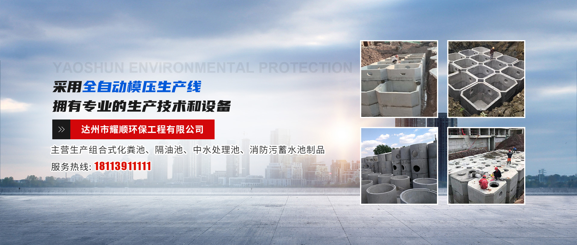 達(dá)州市耀順環(huán)保工程有限公司位于四川東北部、達(dá)州市中部通川區(qū)。本公司采用全自動(dòng)模壓生產(chǎn)線,擁有專業(yè)的生產(chǎn)技術(shù)和設(shè)備,同時(shí)擁有一支專業(yè)的施工隊(duì)伍。本公司堅(jiān)持質(zhì)量第一、互惠發(fā)展,讓您的居住環(huán)境更美、更舒適,是我們工人的宗旨。本公司愿與廣大建筑同仁一道,為美化城市作出貢獻(xiàn)。我公司現(xiàn)生產(chǎn)組合式化糞池、隔油池、中水處理池、消防污蓄水池制品。我們的產(chǎn)品在建筑工程中不斷接受檢驗(yàn),具有安裝便捷、施工安全、用時(shí)短、結(jié)構(gòu)合理、堅(jiān)固耐用、抗?jié)B性能好、凈化效果明顯、經(jīng)濟(jì)合理的優(yōu)特點(diǎn)。...